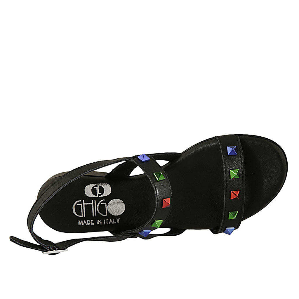 Woman's highfronted Mary Jane shoe with T-strap in black leather heel 4