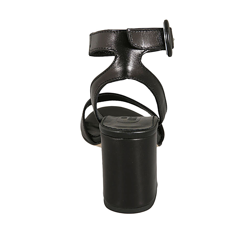 Woman's strap sandal in platinum leather and rope fabric with rhinestones and heel 2