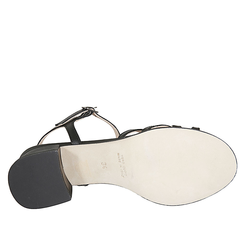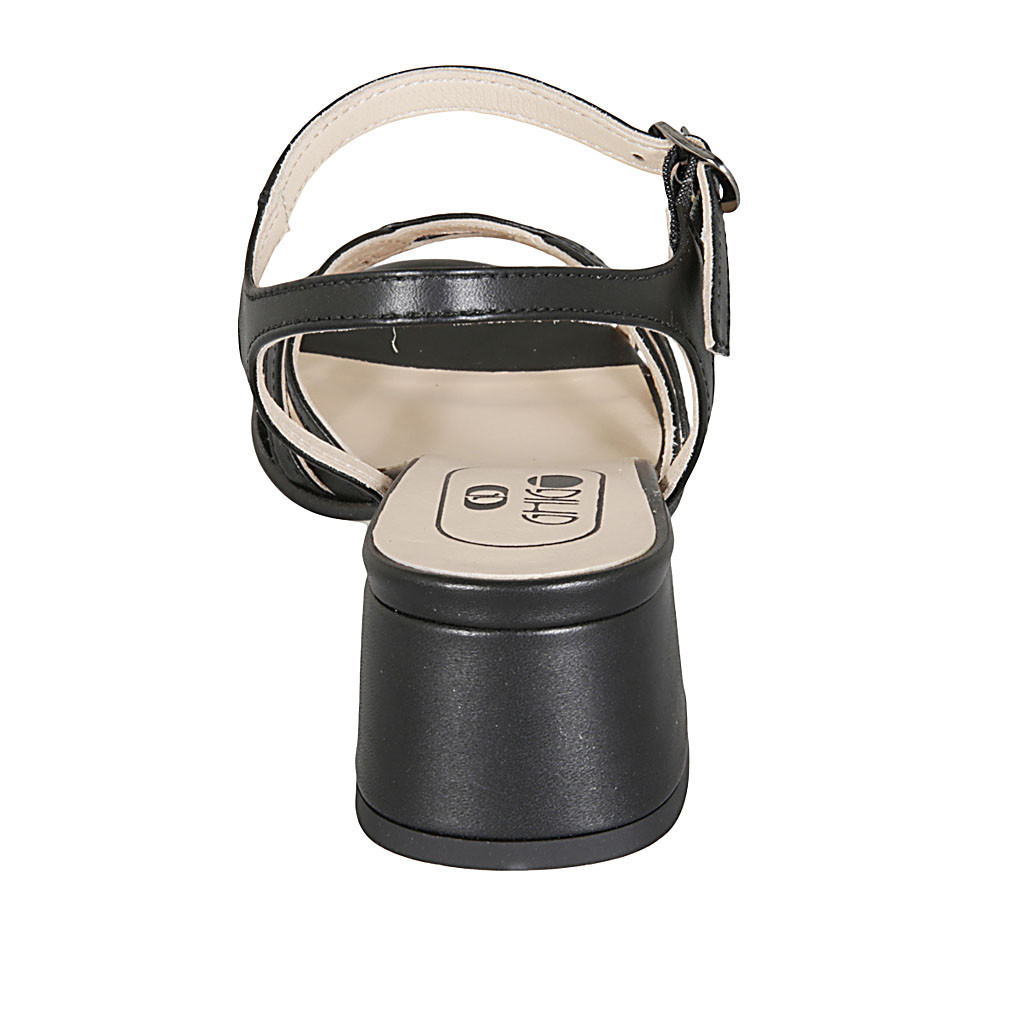 Woman's strap sandal in black leather heel 4