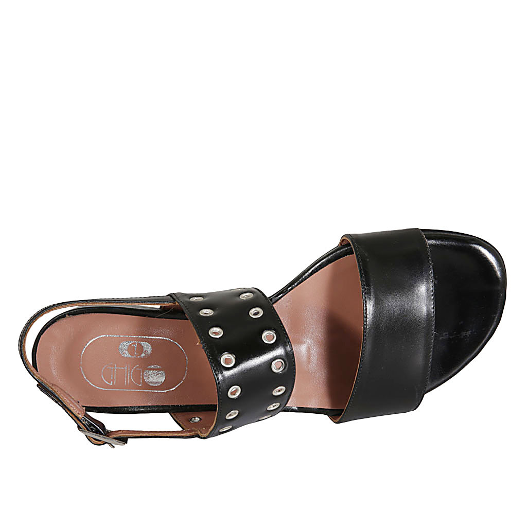 Woman's sandal in black leather heel 1