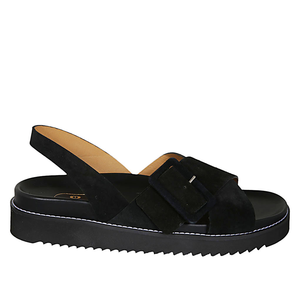 Woman's strap sandal in cognac brown leather with platform and wedge heel 12