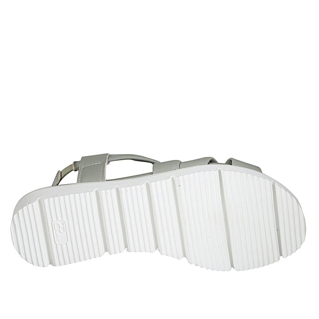 Woman's sandal in sage green leather with elastic band wedge heel 3 - Available sizes:  43