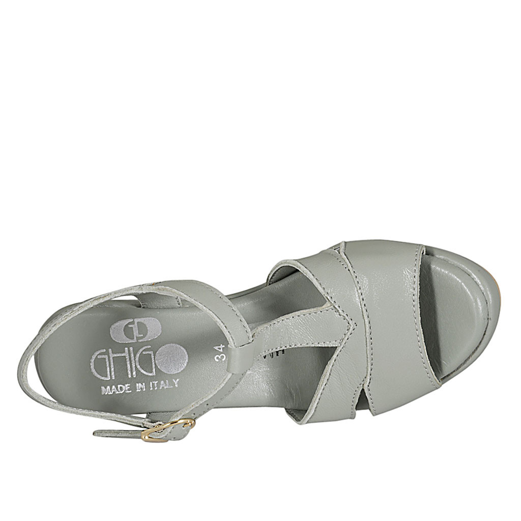 Woman's sandal with strap in sage green leather wedge heel 9 - Available sizes:  42, 43