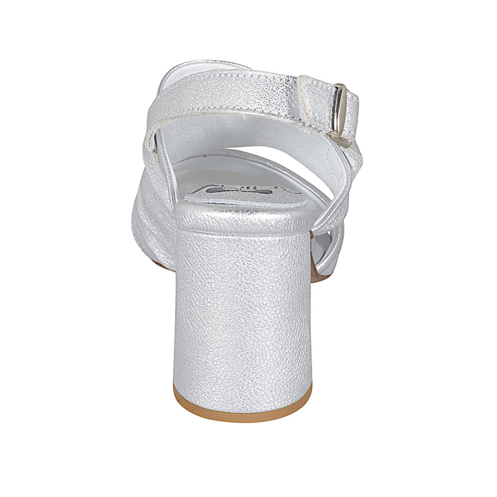 Woman's sandal in silver laminated leather heel 7 - Available sizes:  42