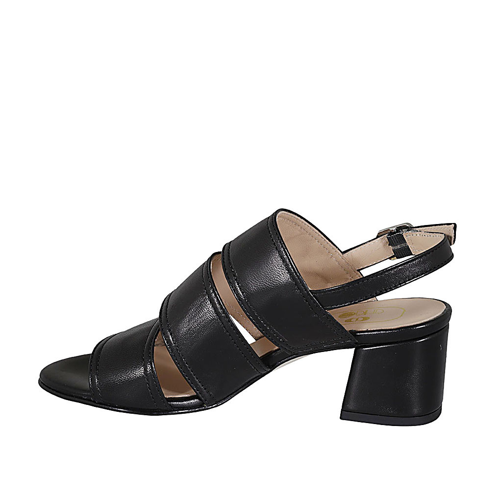 Woman's sandal in black leather heel 5 - Available sizes:  42, 43, 44
