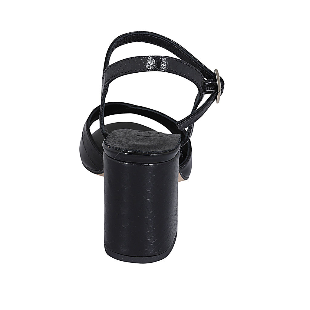 Woman's strap sandal in black patent leather and printed patent leather heel 7 - Available sizes:  43