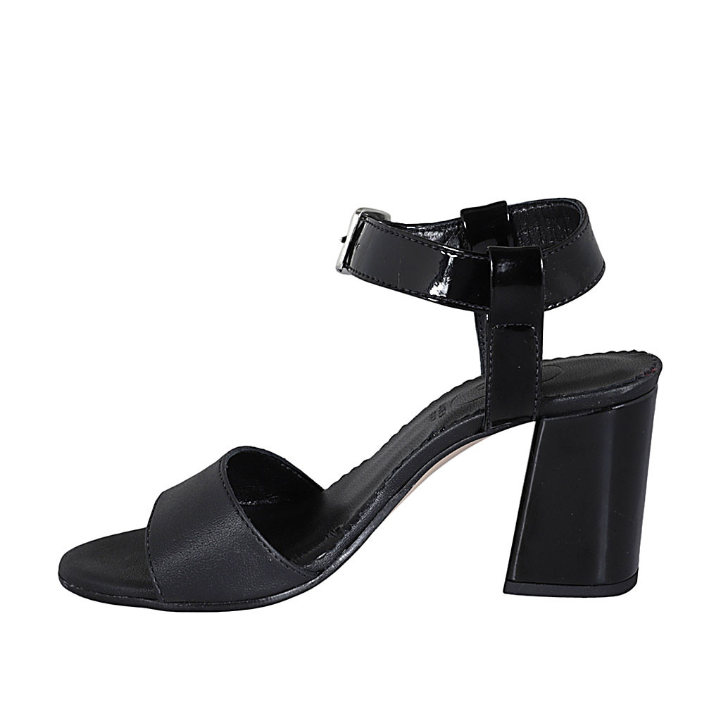 Woman's ankle strap sandal in black leather and patent leather heel 7 - Available sizes:  32, 42, 43