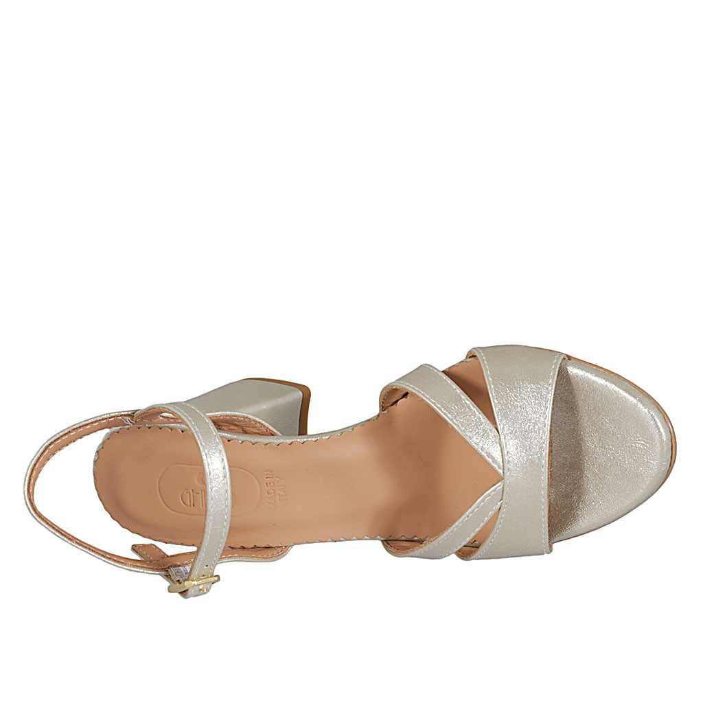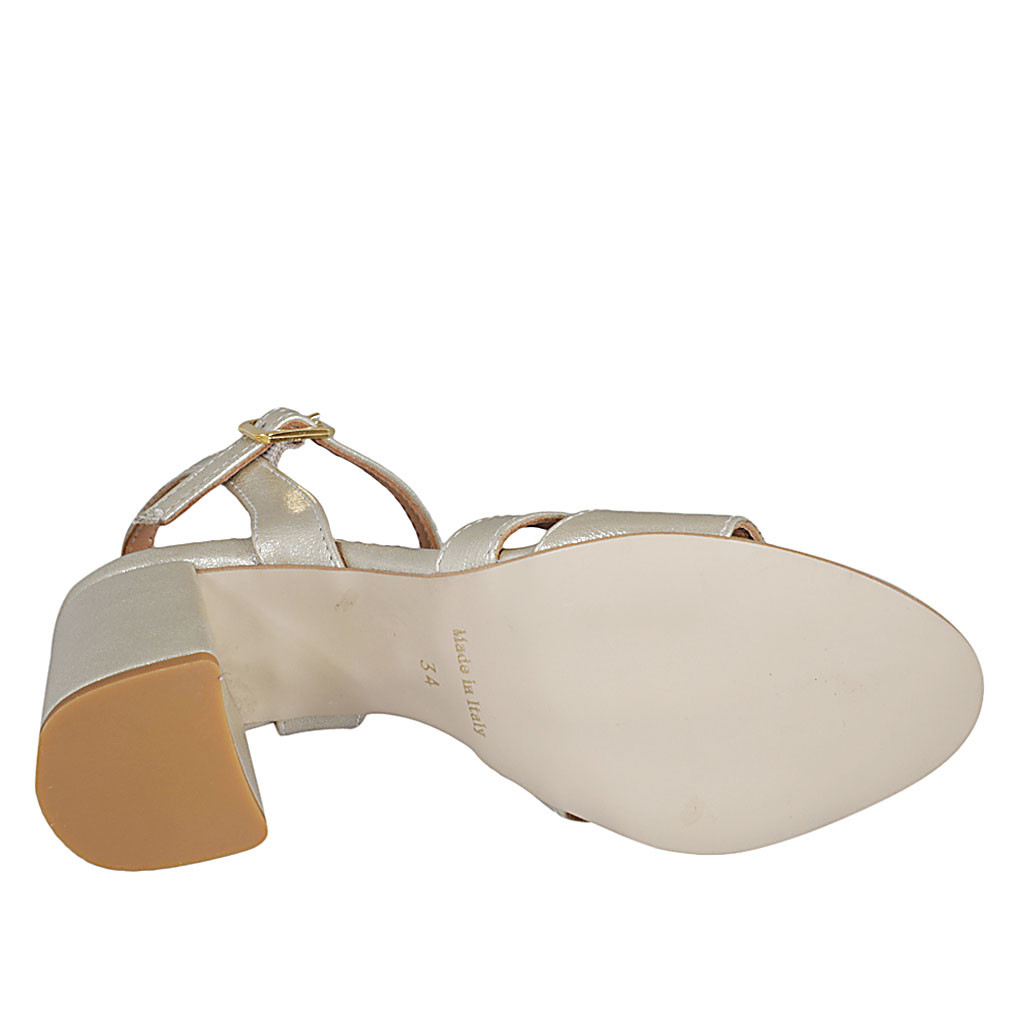 Woman's sandal in platinum laminated leather with strap heel 7 - Available sizes:  43, 44, 45