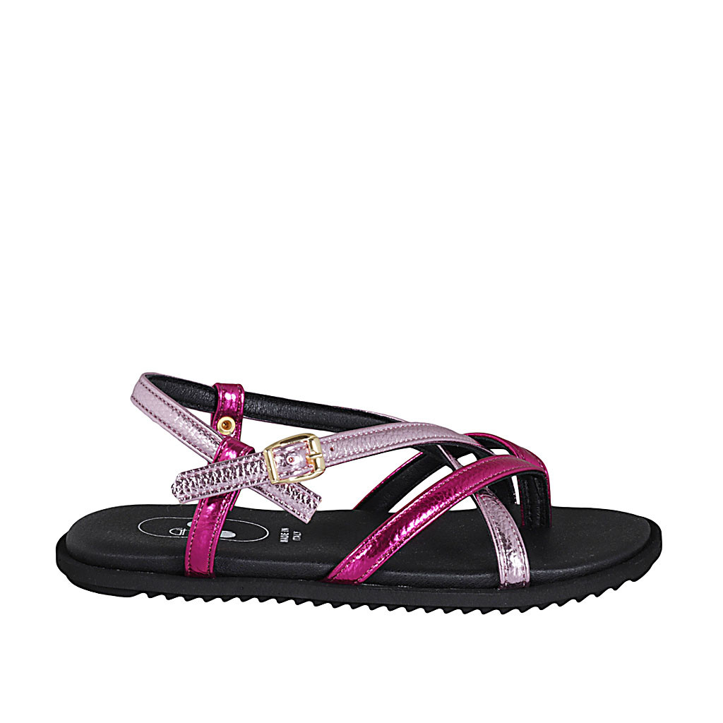Woman's thong sandal in rose and pink laminated leather with strap wedge heel 1 - Available sizes:  32, 42