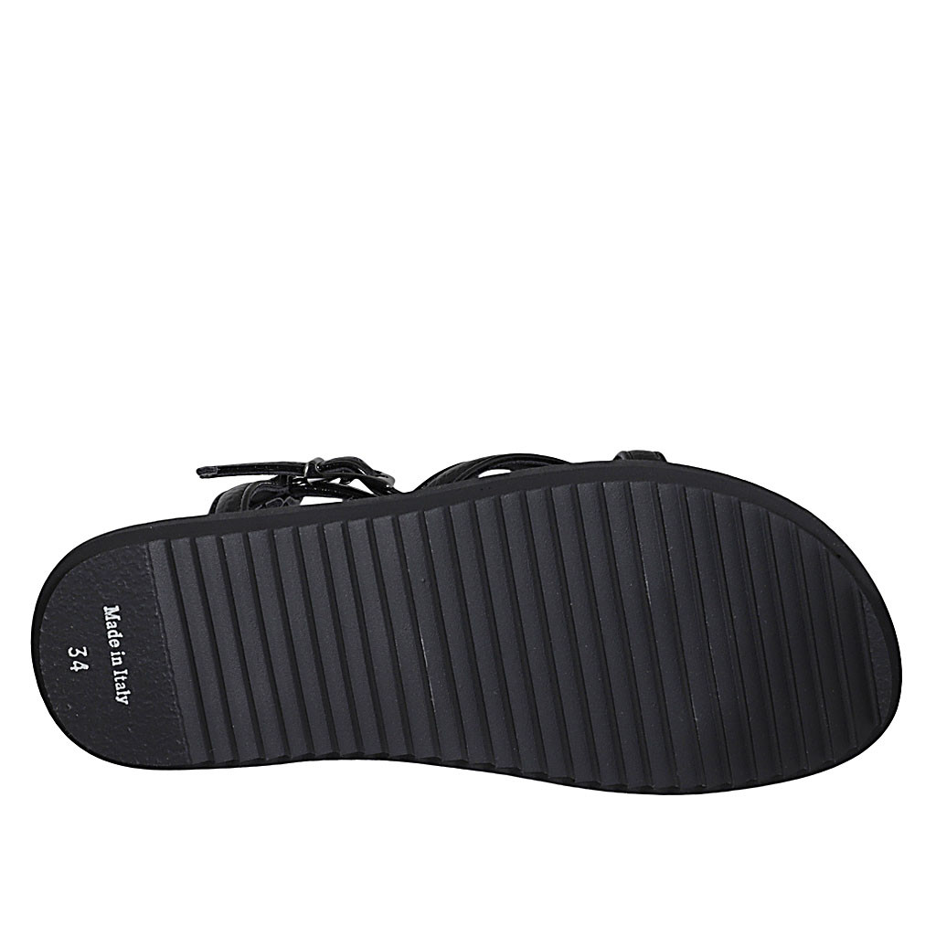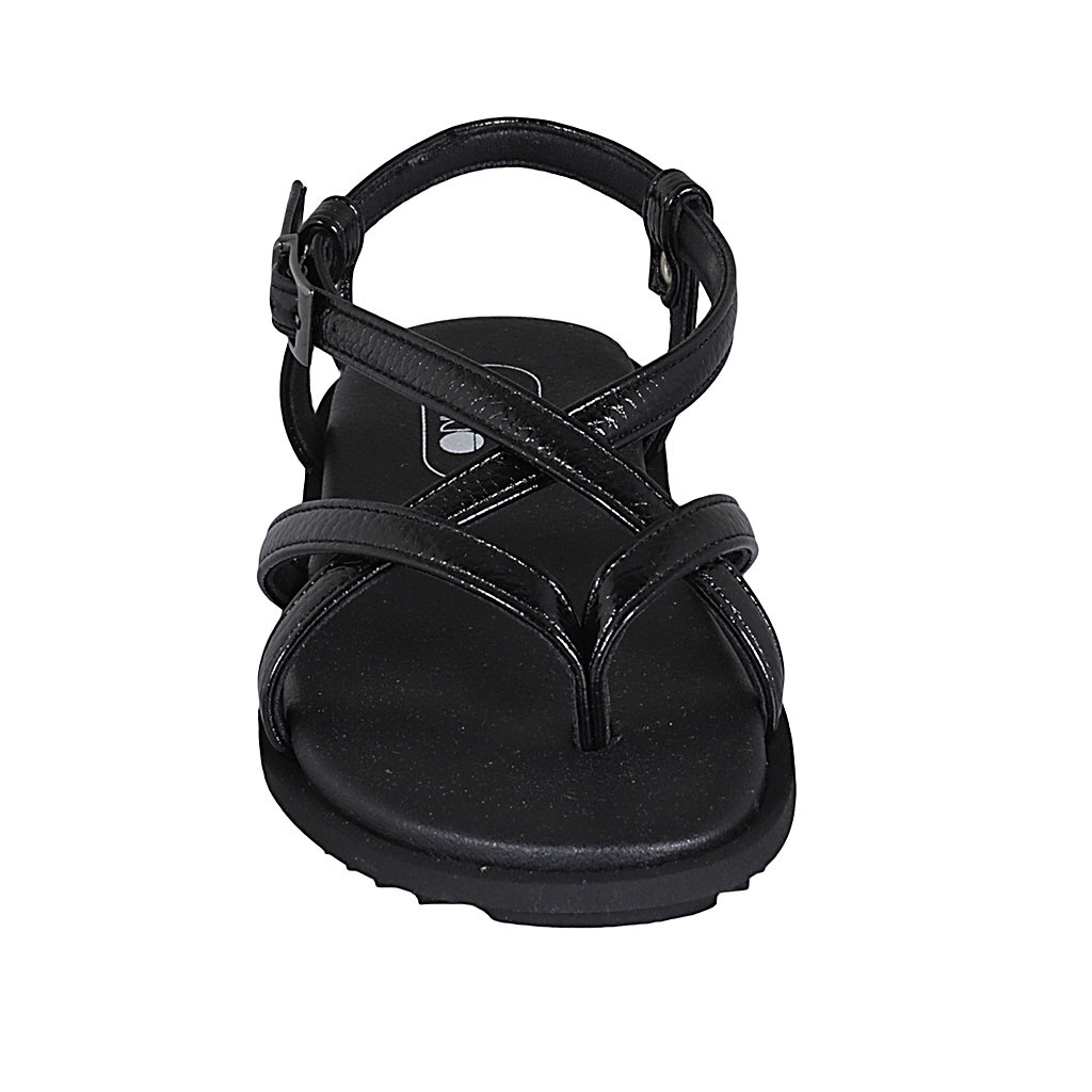 Woman's thong sandal in black patent leather with strap wedge heel 1 - Available sizes:  32, 42