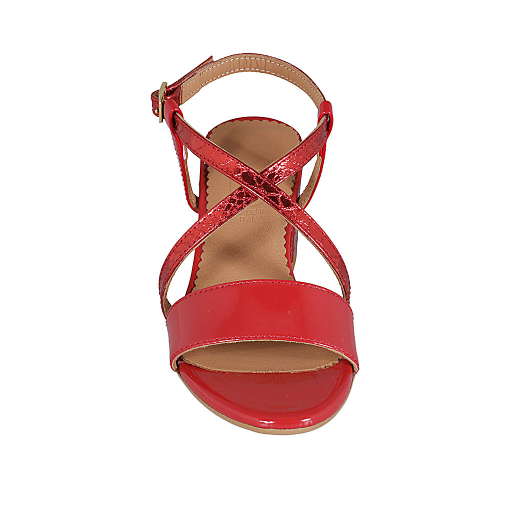 Woman's sandal in red printed leather and patent leather heel 5 - Available sizes:  43, 44