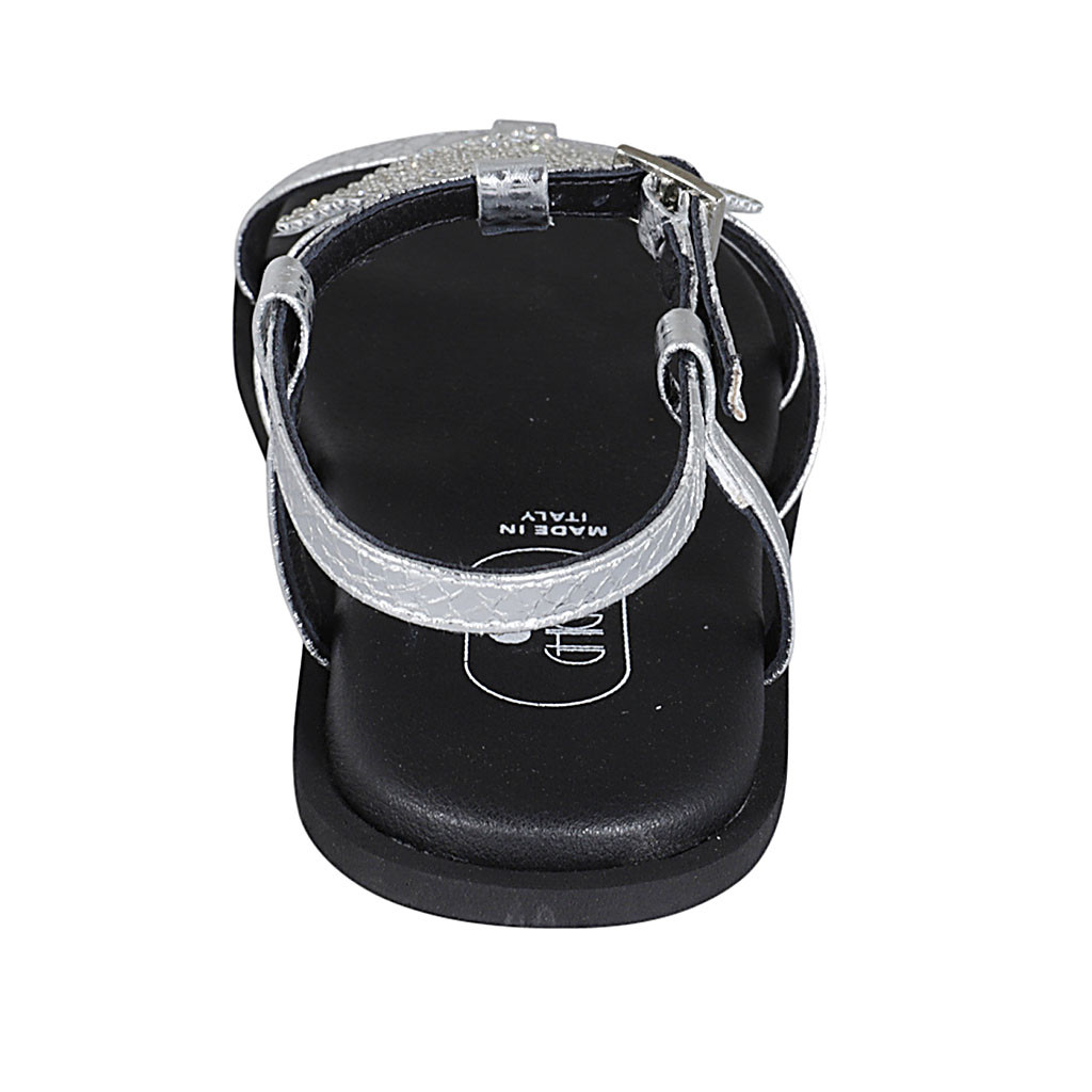 Woman's sandal in black leather with strap and rhinestones heel 2