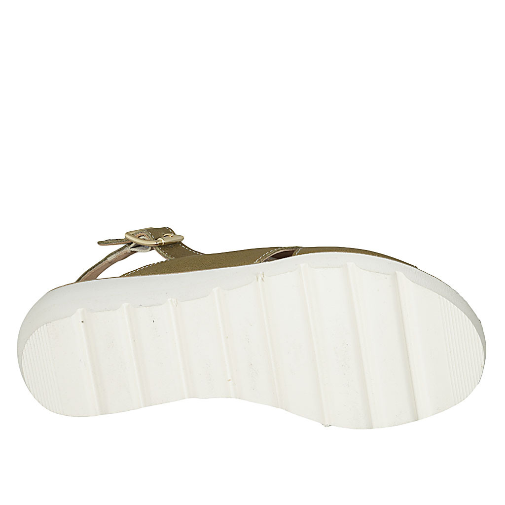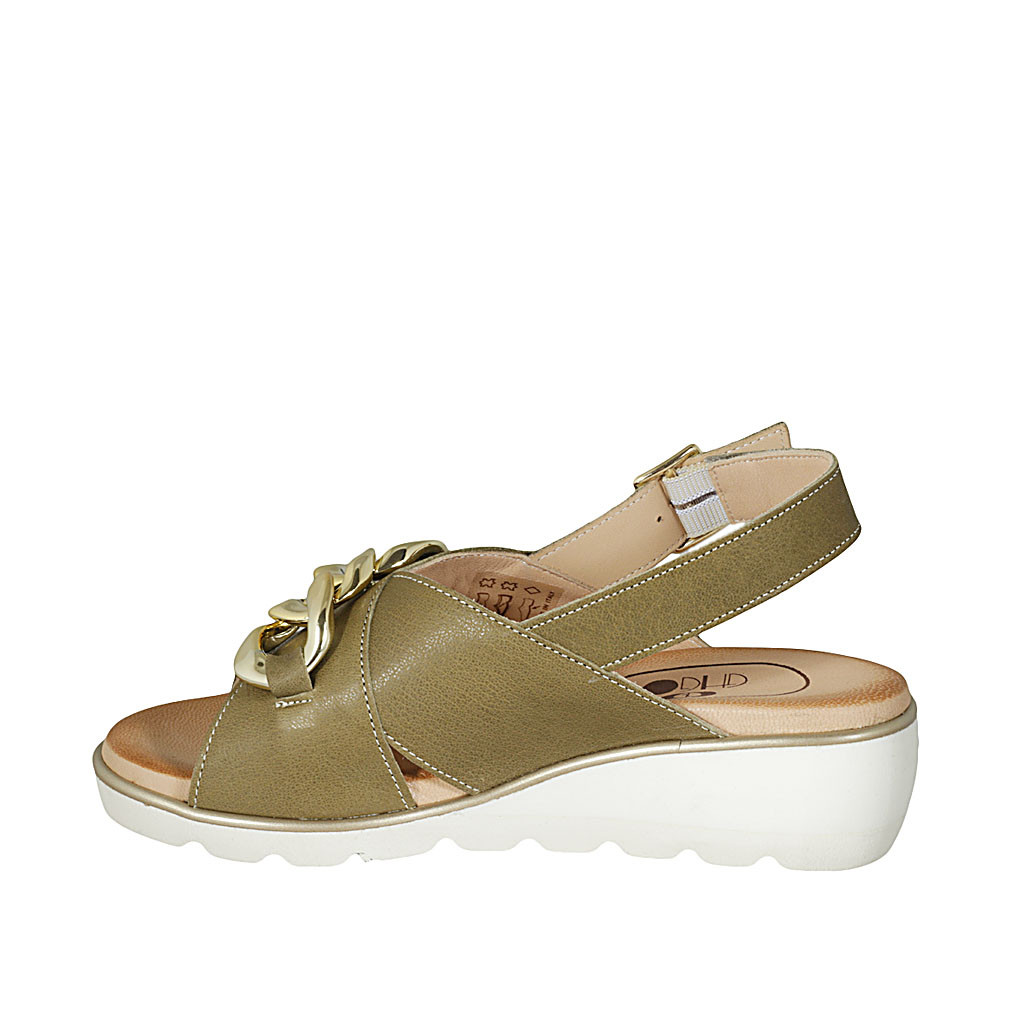 Woman's sandal with chain in green leather wedge heel 4 - Available sizes:  42