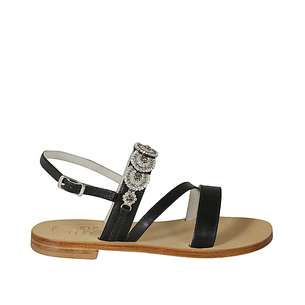 Woman's sandal with rhinestones in black leather heel 2 - Available sizes:  33, 42