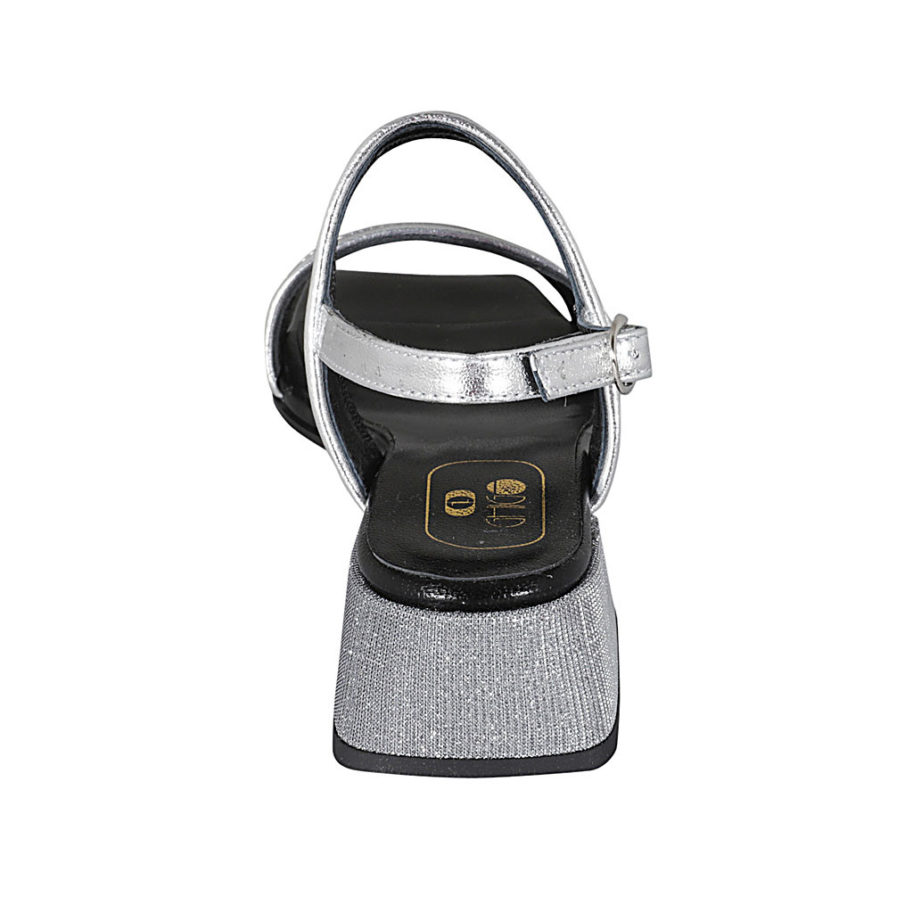 Woman's pointy open shoe with strap and elastic band in black leather heel 5