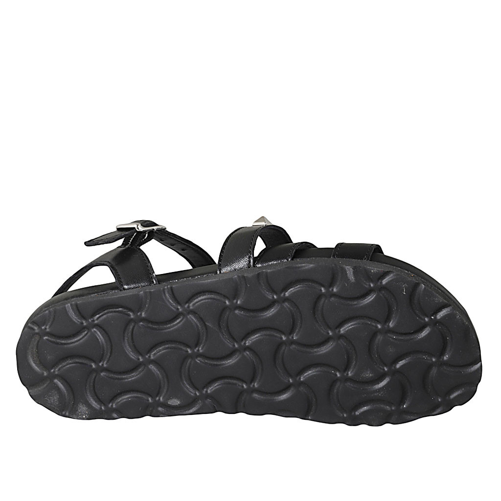 Woman's sandal with strap and studs in black leather wedge heel 2 - Available sizes:  34