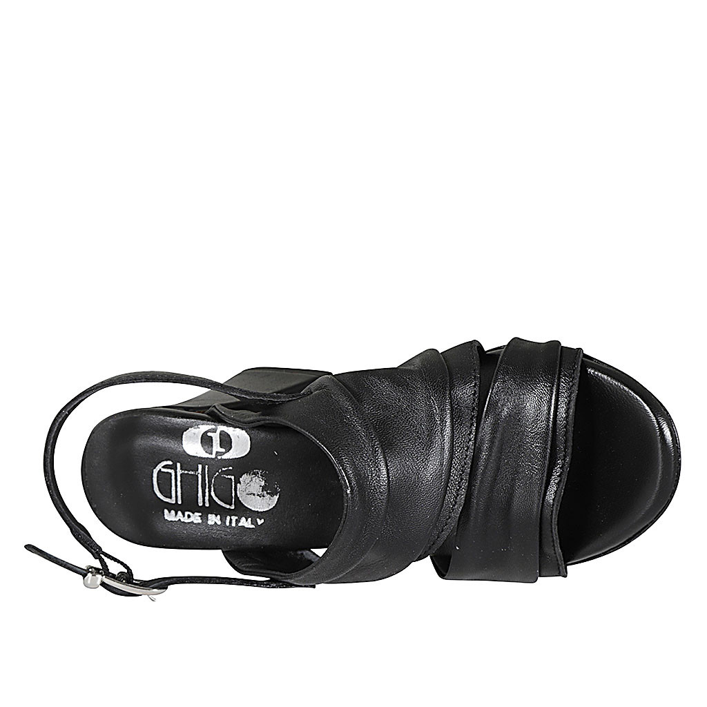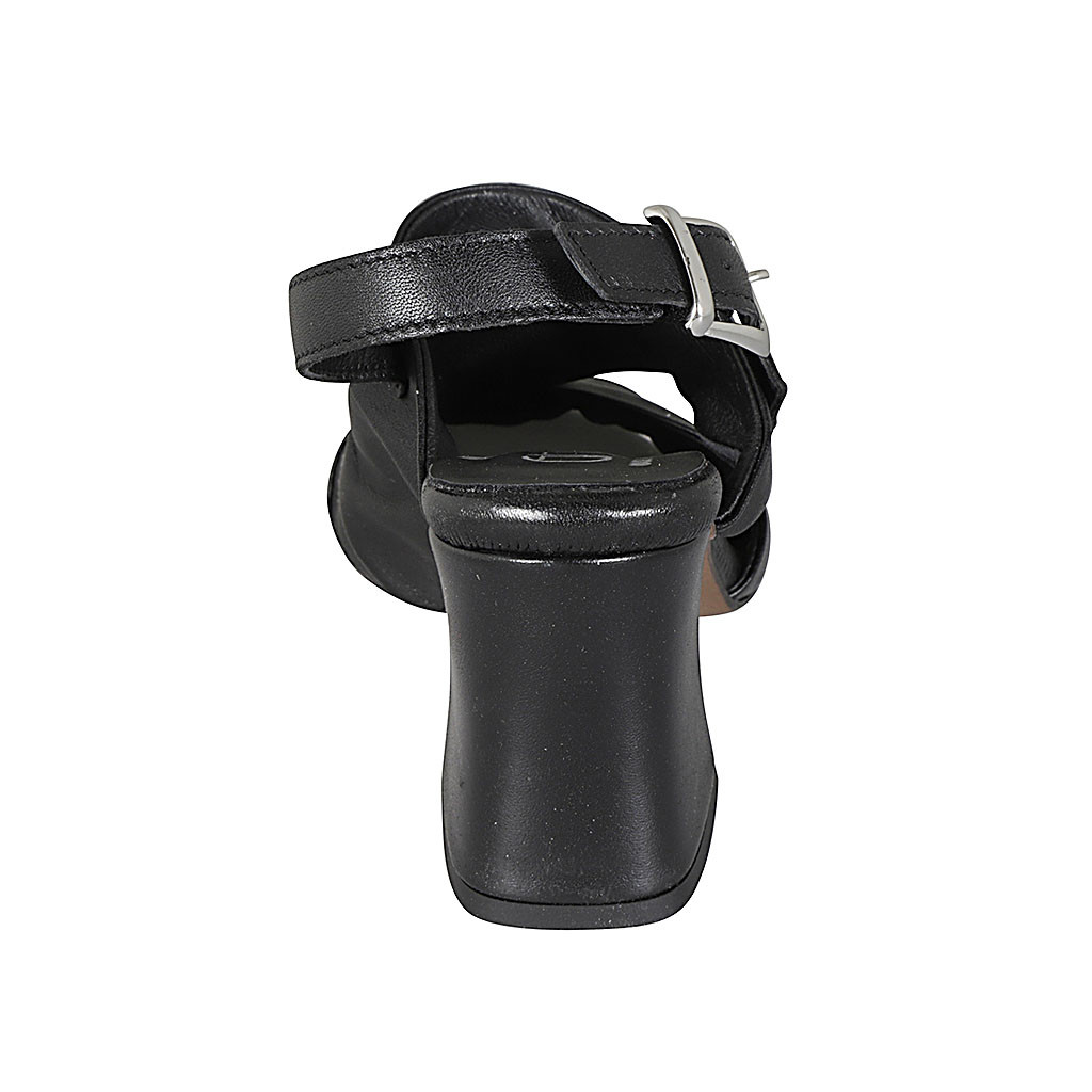 Woman's sandal in black leather heel 7 - Available sizes:  32