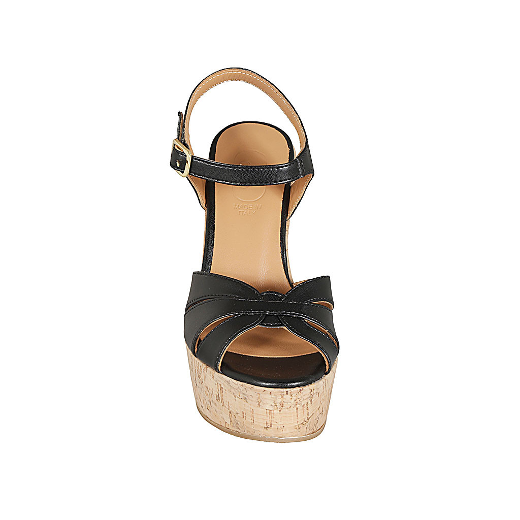 Woman's sandal in black leather with platform, strap and wedge heel 12 - Available sizes:  43