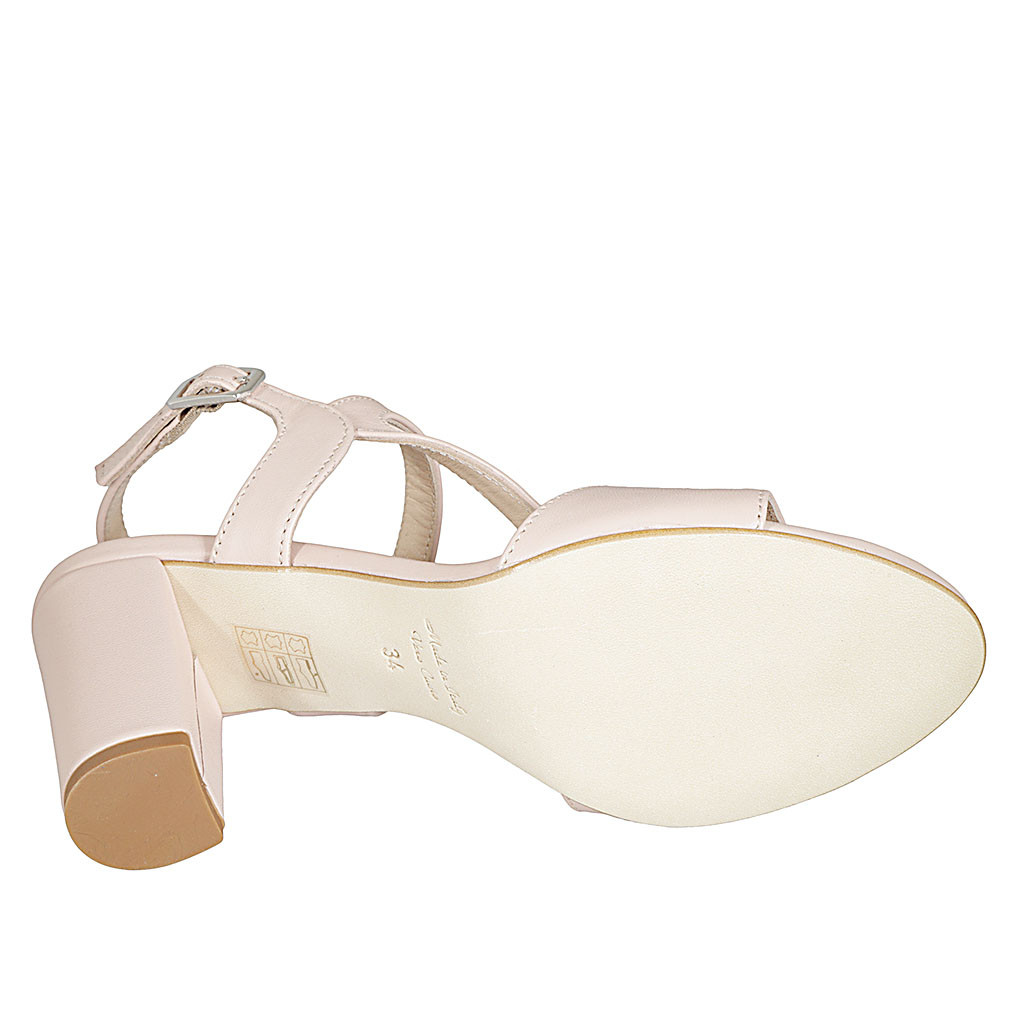 Woman's sandal with elastic band in rose leather heel 8 - Available sizes:  43