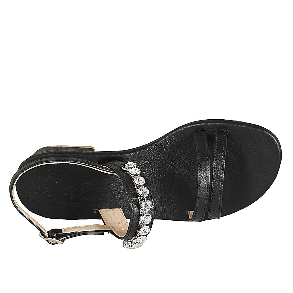 Woman's sandal in black leather with crystal rhinestones heel 4 - Available sizes:  42, 43, 46