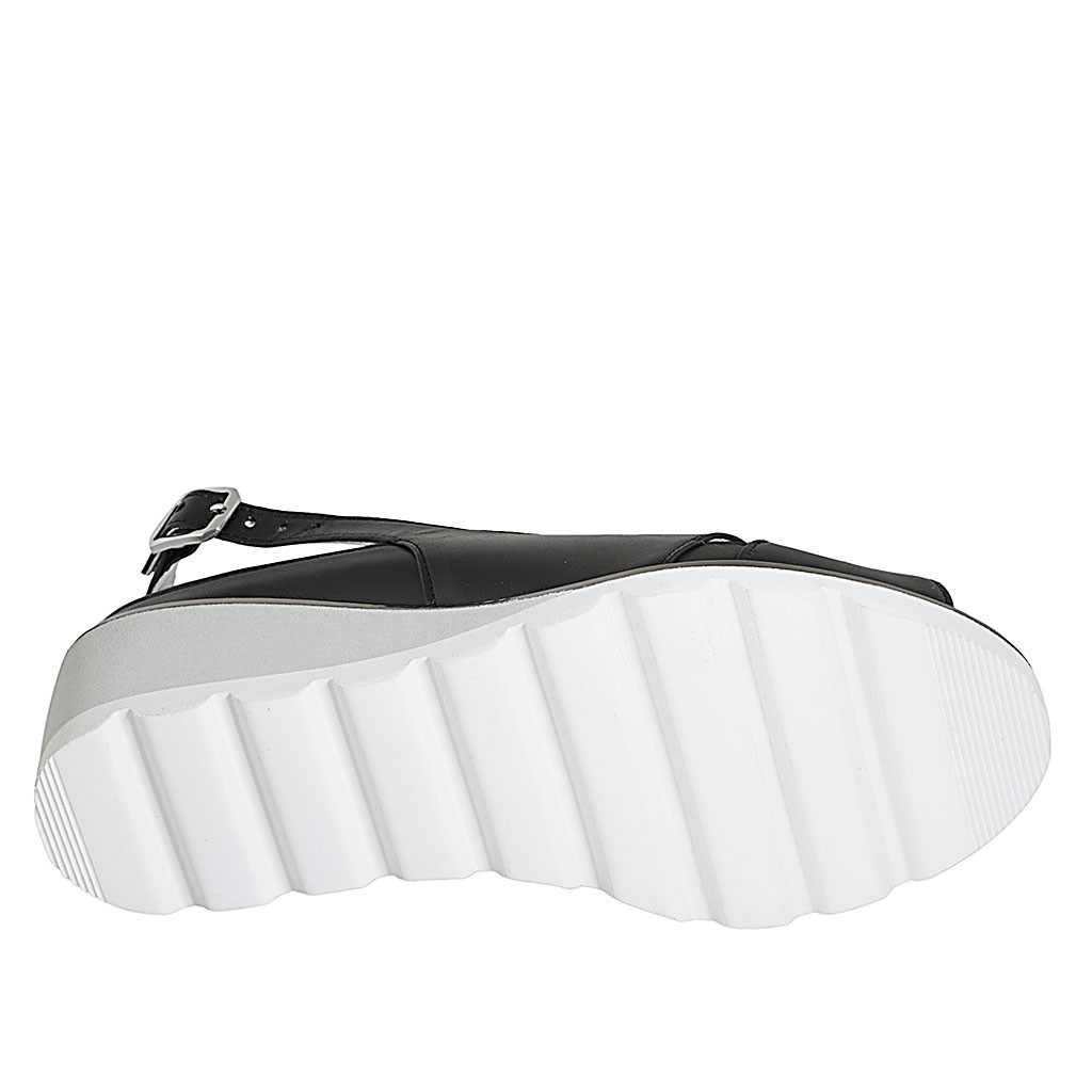 Woman's Mary Jane with rounded tip and straps in black patent leather heel 1