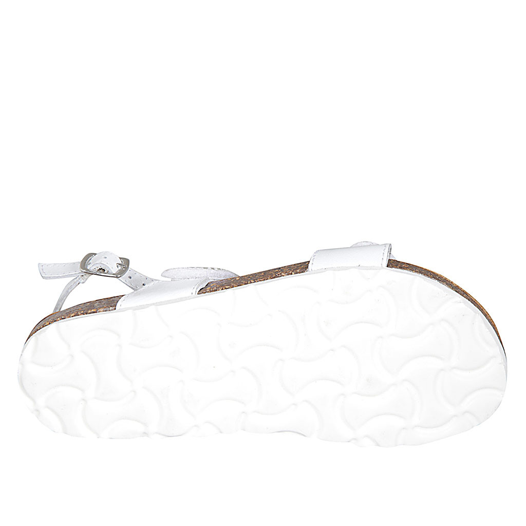 Woman's strap sandal in platinum leather and rope fabric with rhinestones and heel 2