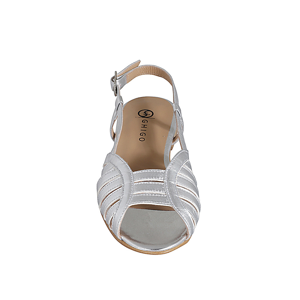 Woman's sandal in silver laminated leather heel 2 - Available sizes:  35