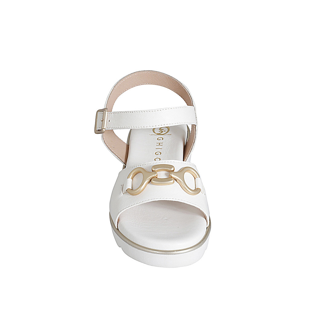 Woman's strap sandal with accessory in white leather wedge heel 3 - Available sizes:  32, 35