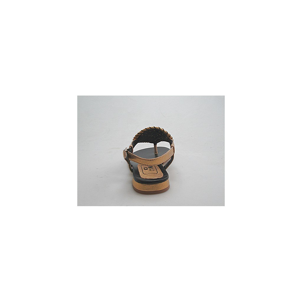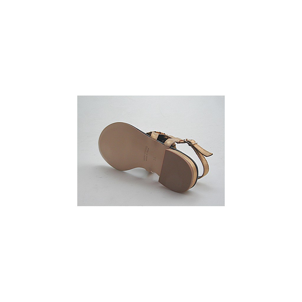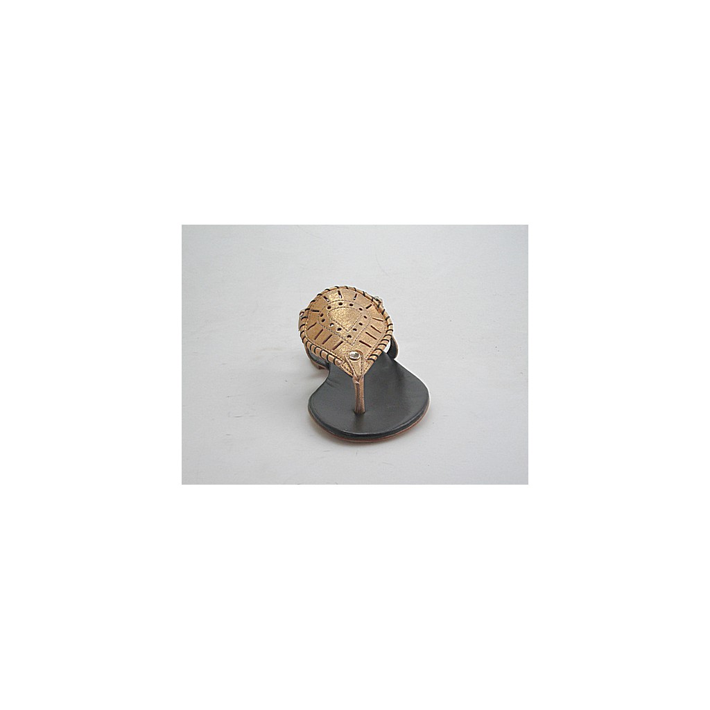 Flip flop sandal in golden leather heel 1