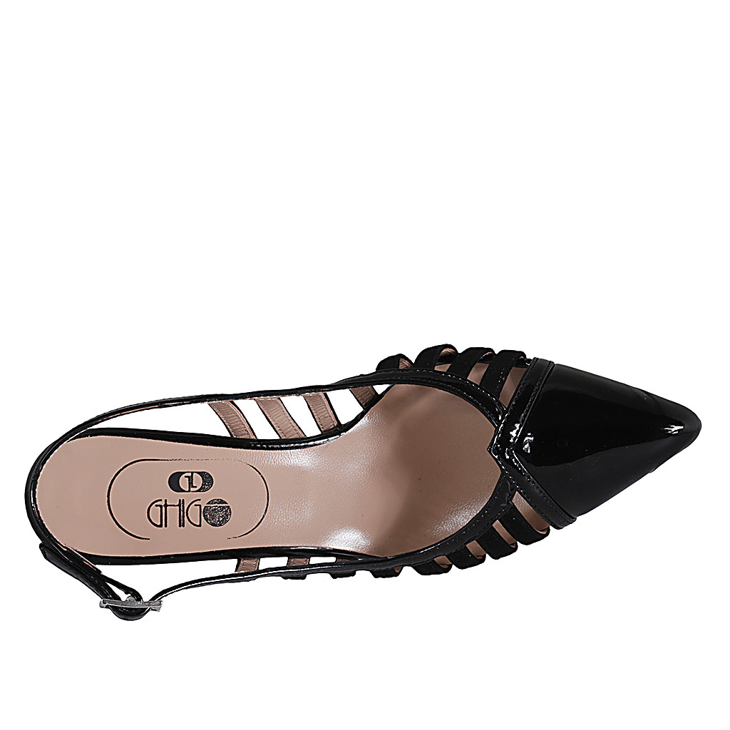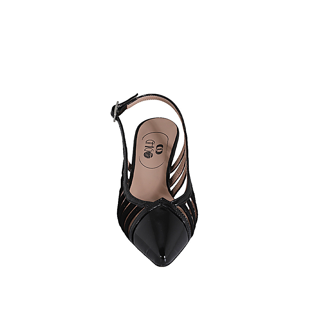 Woman's pointy slingback pump in black suede and patent leather heel 5 - Available sizes:  35