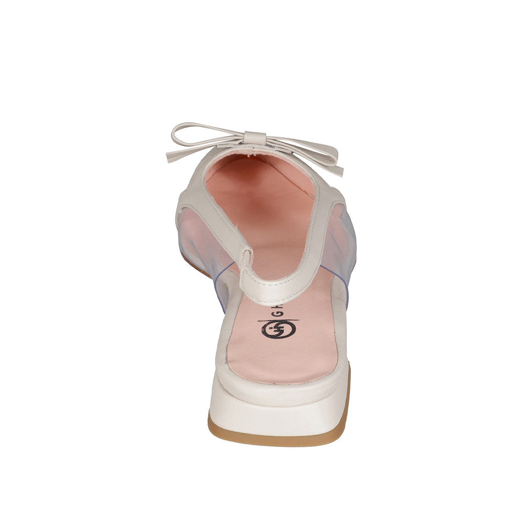 Woman's pointy open shoe with strap in pink leather and light pink patent leather heel 8