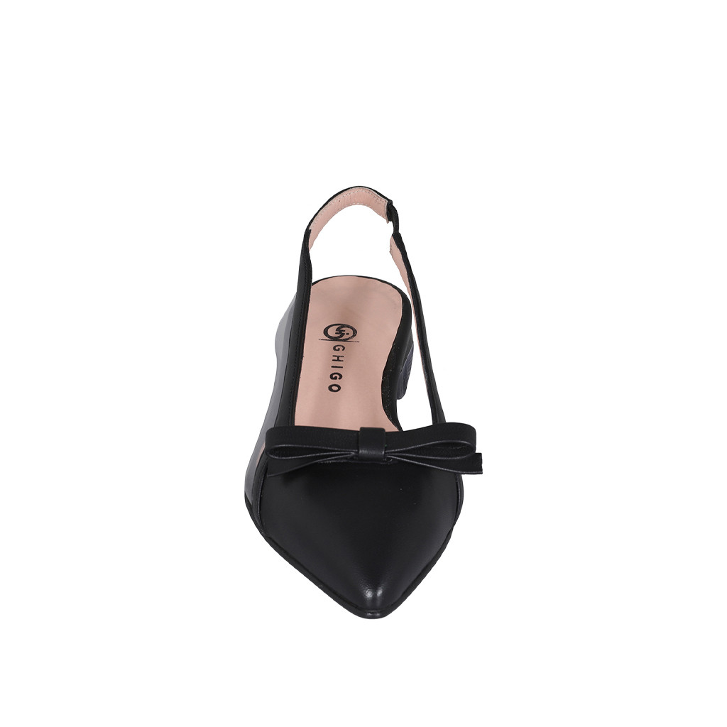 Woman's slingback in beige braided raffia with geometrical pattern and black leather heel 2