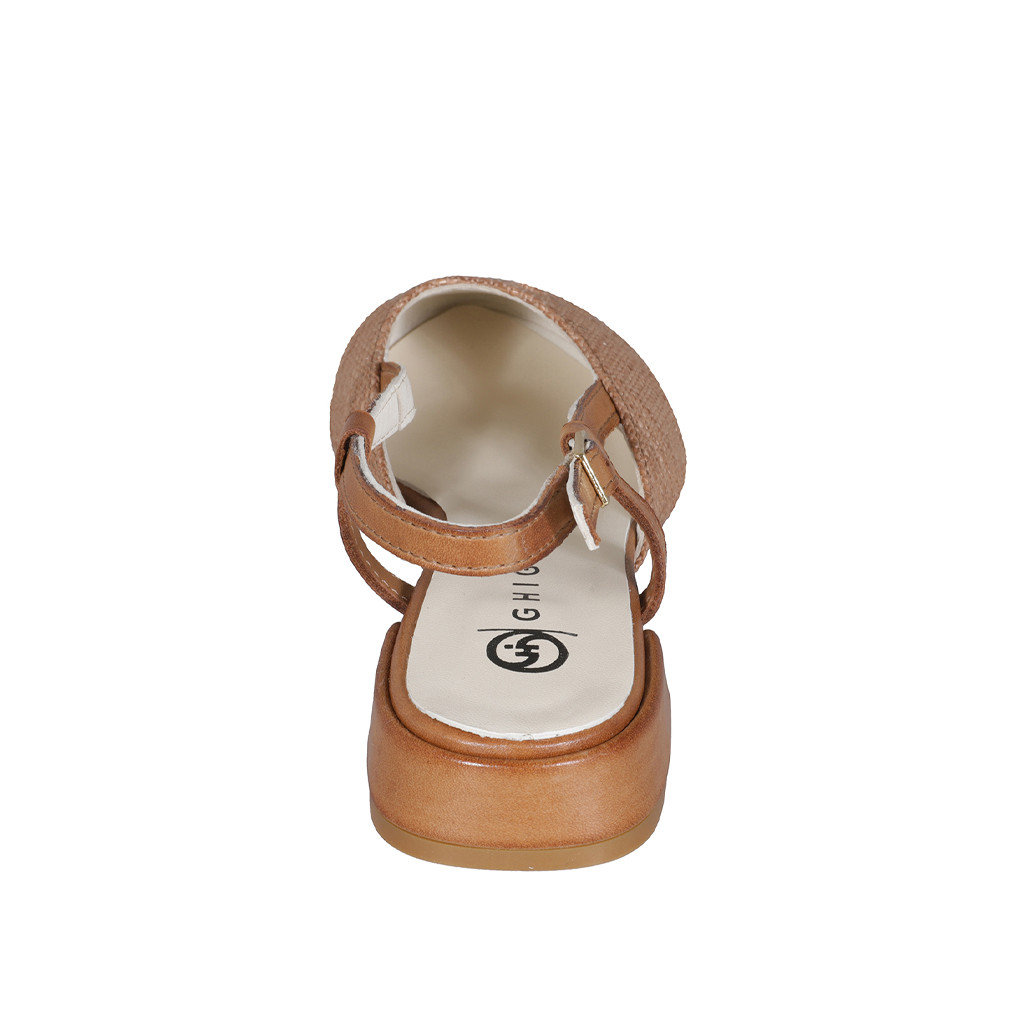 Woman's slingback in cognac brown braided raffia and leather heel 2