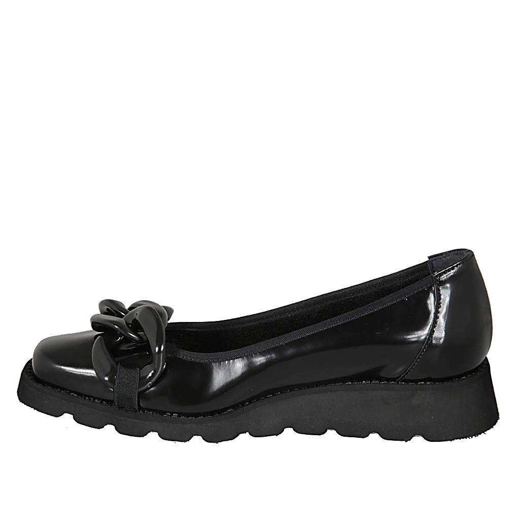 Bailarina para mujer en piel cepillada negra con cadena cuña 3 - Tallas disponibles:  32