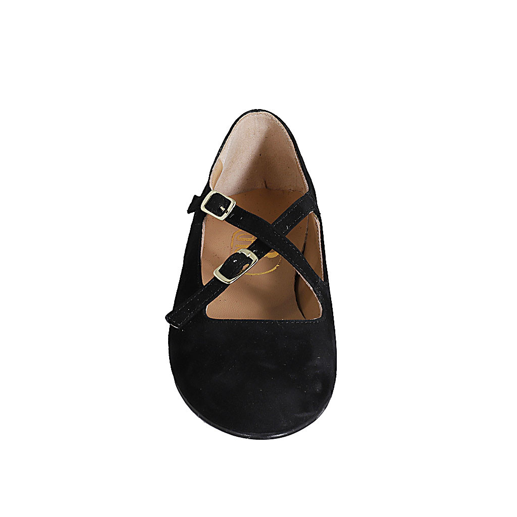 Mary Jane para mujer con punta redonda y cinturones en gamuza negra tacon 1