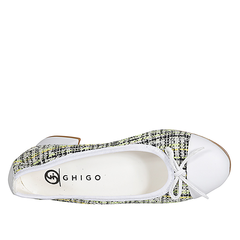 Bailarina para mujer en piel blanca y tejido multicolor con puntera y moño tacon 4 - Tallas disponibles:  32, 35, 42, 43, 44