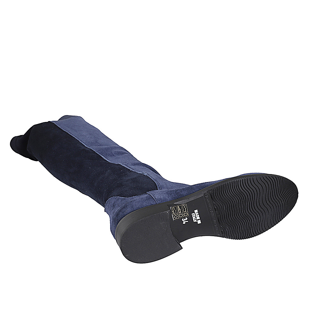 Botas a la rodilla para mujer en gamuza y material elastico azul tacon 3 - Tallas disponibles:  34