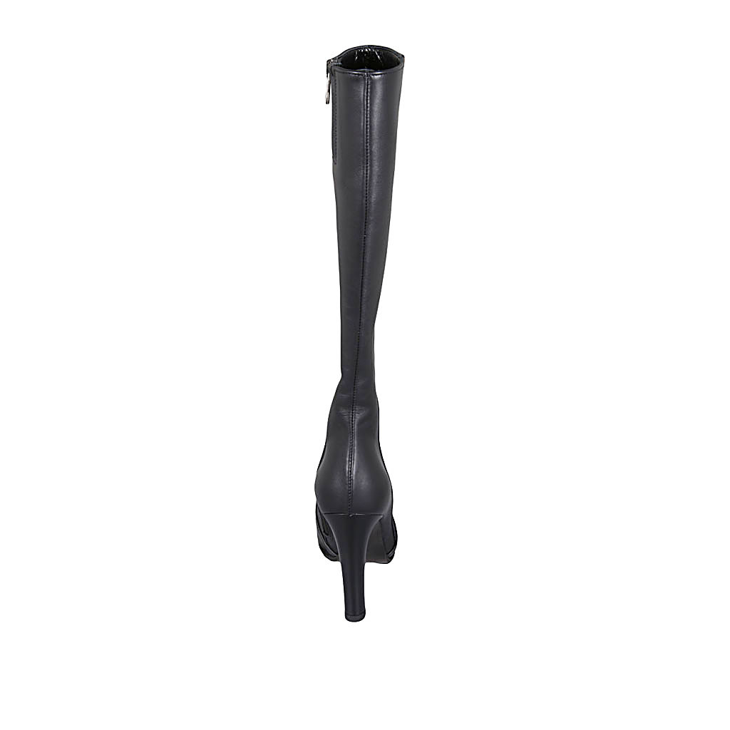 Bota a punta para mujer con cremallera en piel negra tacon 10