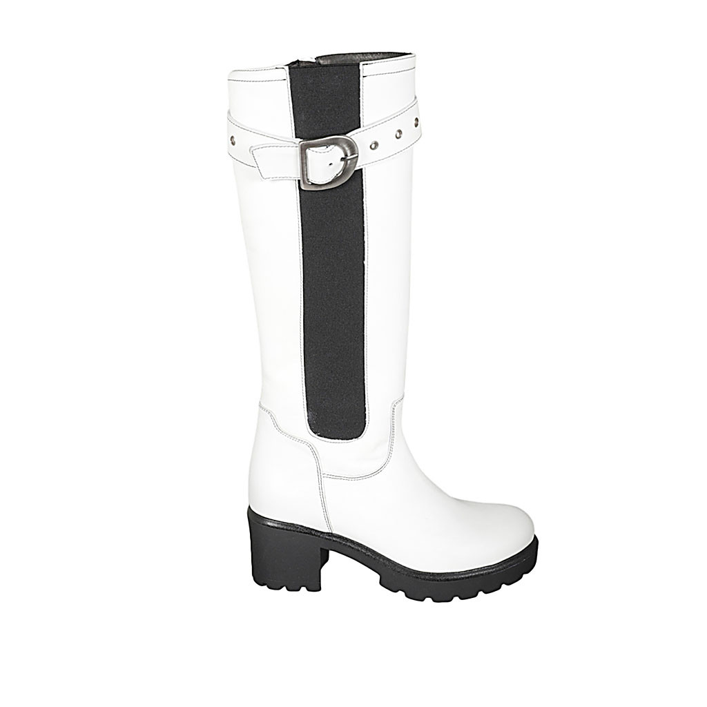 Botas sobre la rodilla para mujer en gamuza y material elastico negro tacon 7