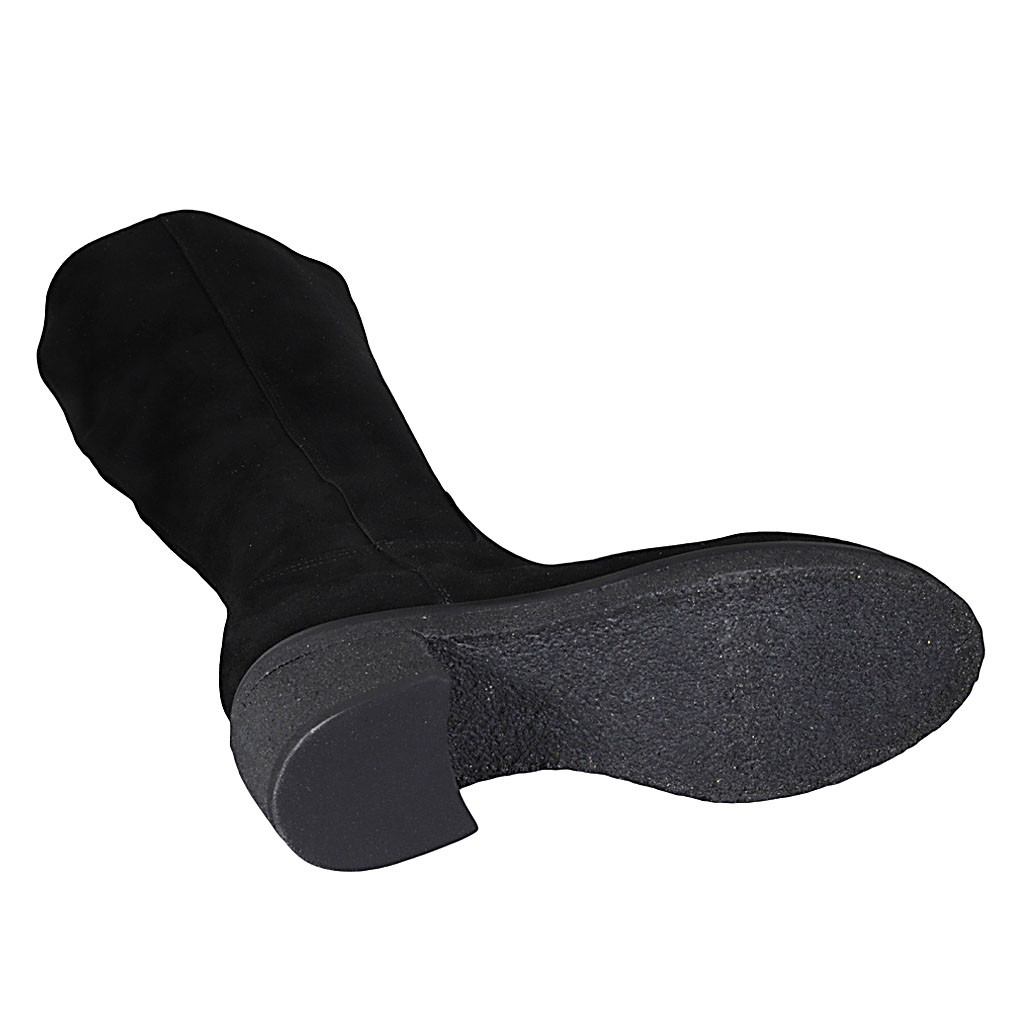 Sabo abierto para mujer en piel perforada de color negro con plataforma y cuña 7