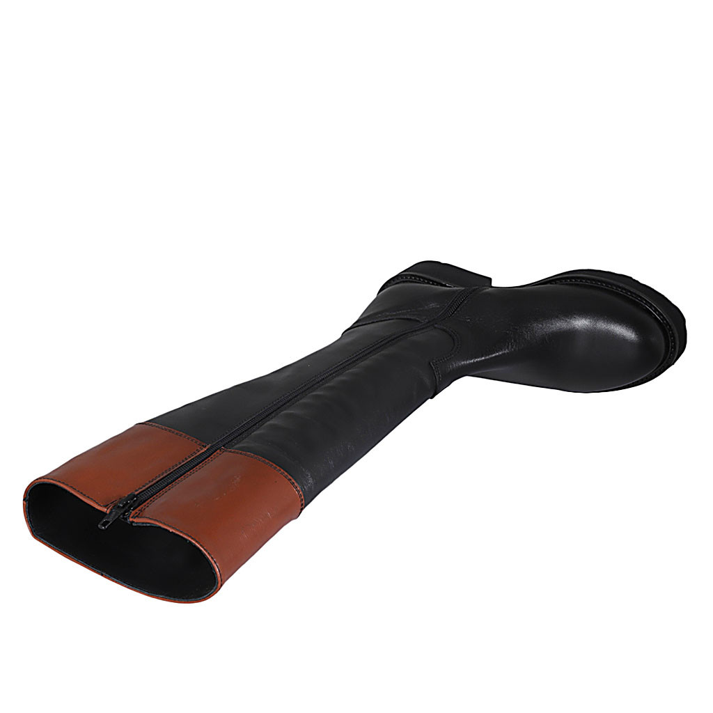 Bota para mujer en piel negra y cognac con cremallera tacon 4
