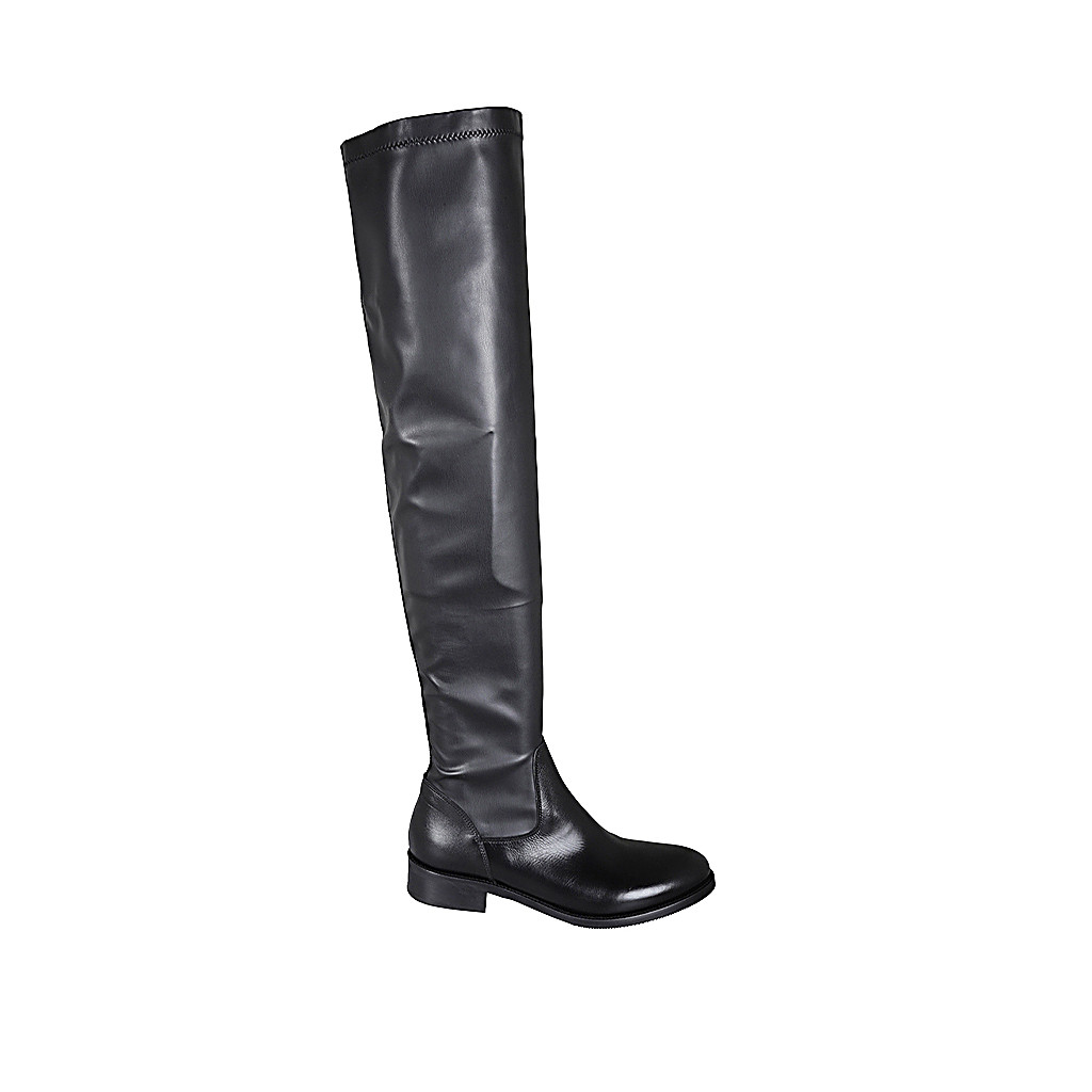 Botas sobre la rodilla para mujer en piel y material elastico negro tacon 3