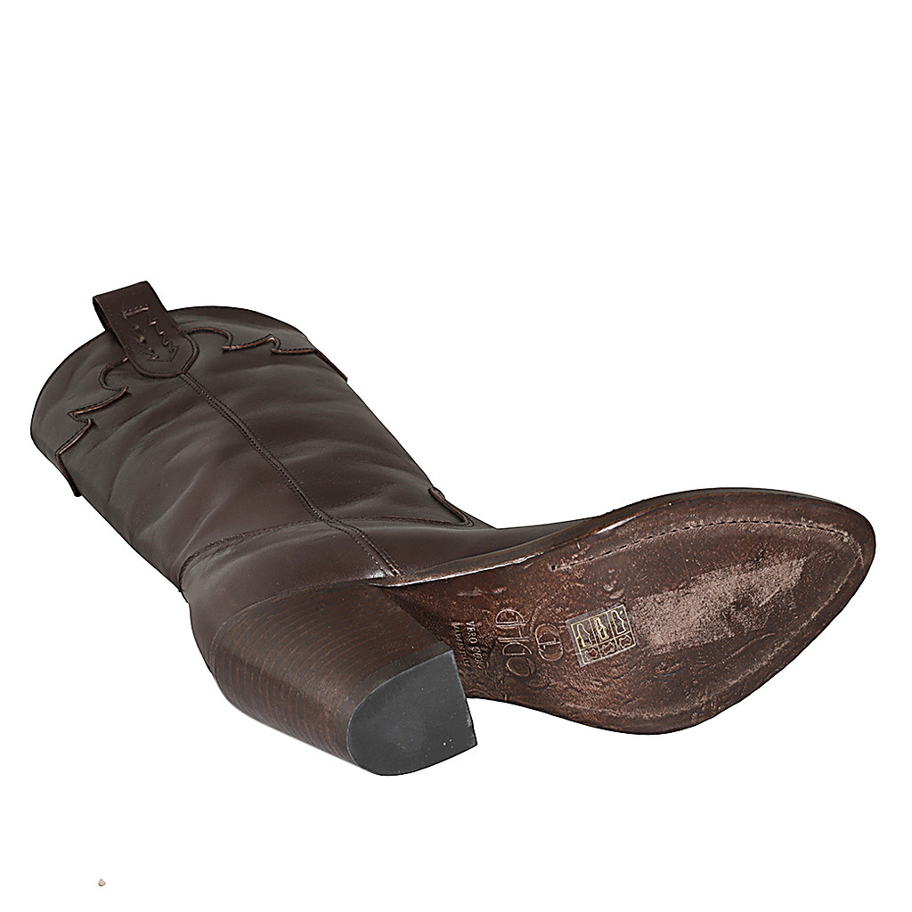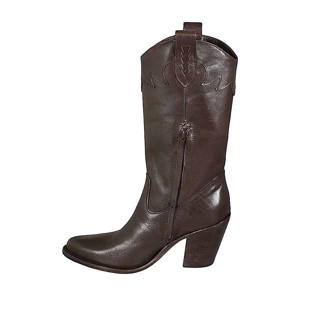 Bota tejana para mujer con media cremallera y bordado en piel marron tacon 8 - Tallas disponibles:  32, 33, 34, 44