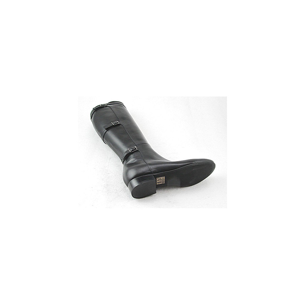Mocasino a punta para mujer con accesorio en piel y charol negro tacon 3