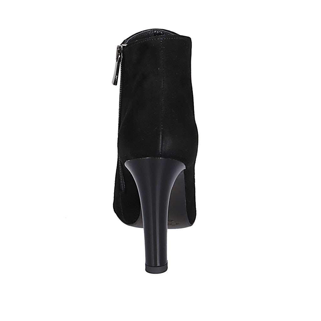 Botines para mujer en gamuza negra con cremallera tacon 6