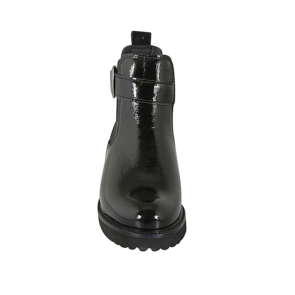 Sandalia para mujer con plataforma y cinturon en piel laminada plateada cuña 9