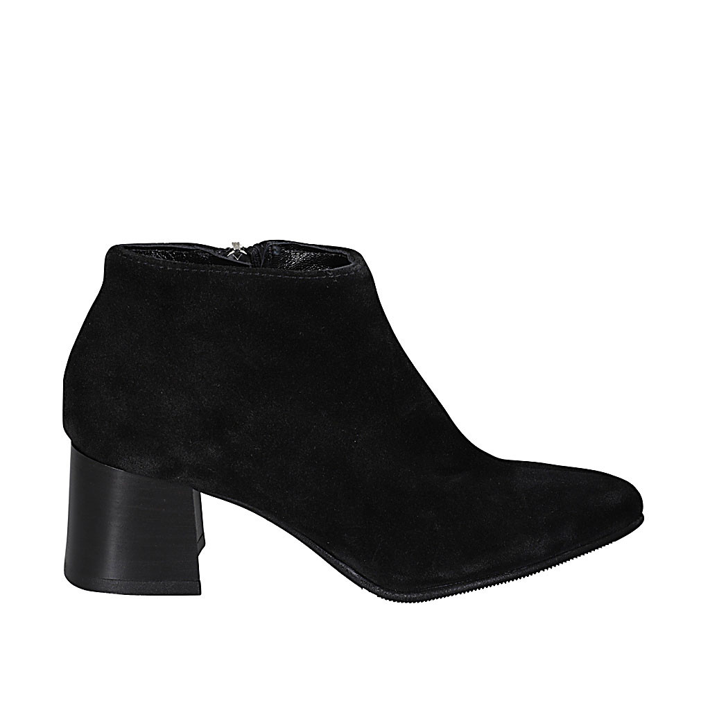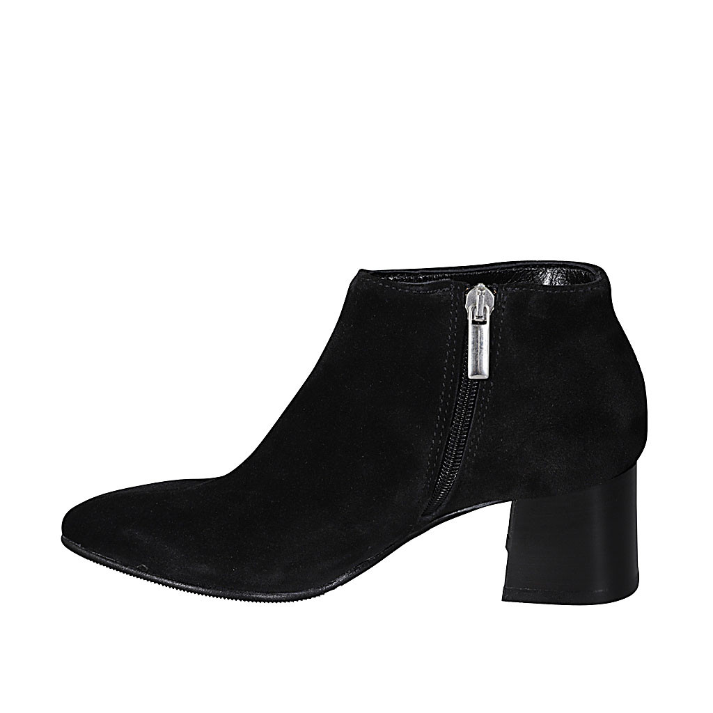 Botin para mujer con cordones y cremallera en gamuza cognac tacon 5