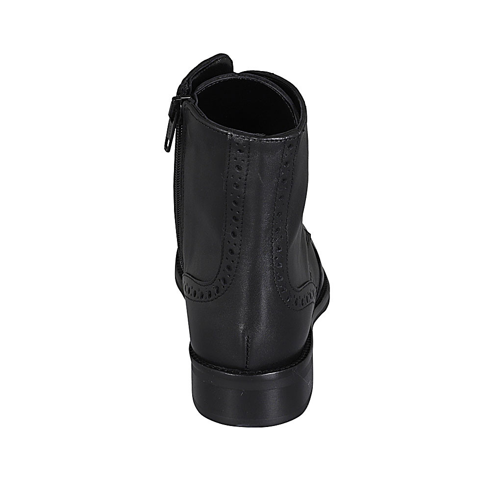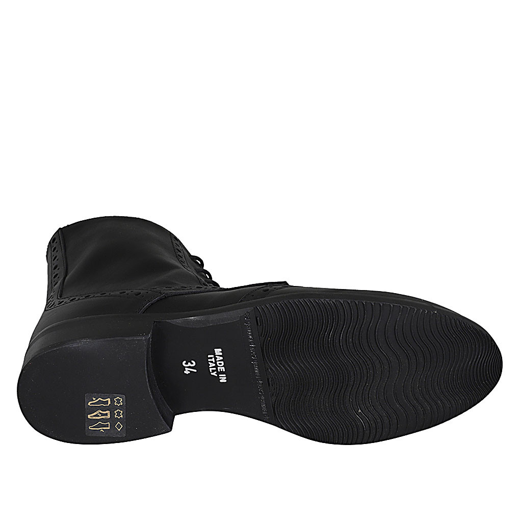 Botin para mujer con cordones, punta Brogue y cremallera en piel negra tacon 3 - Tallas disponibles:  45
