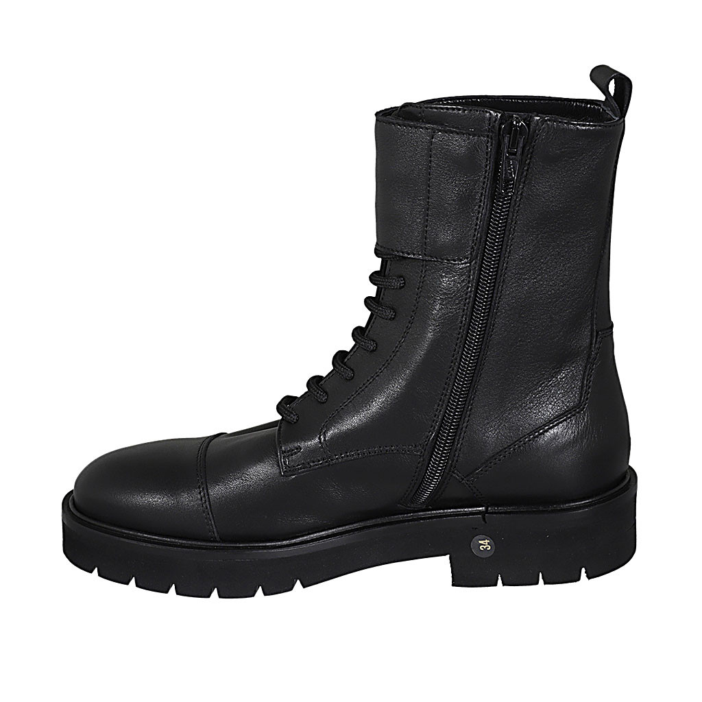 Botin con cremallera, cordones y elastico para mujer en piel negra tacon 3