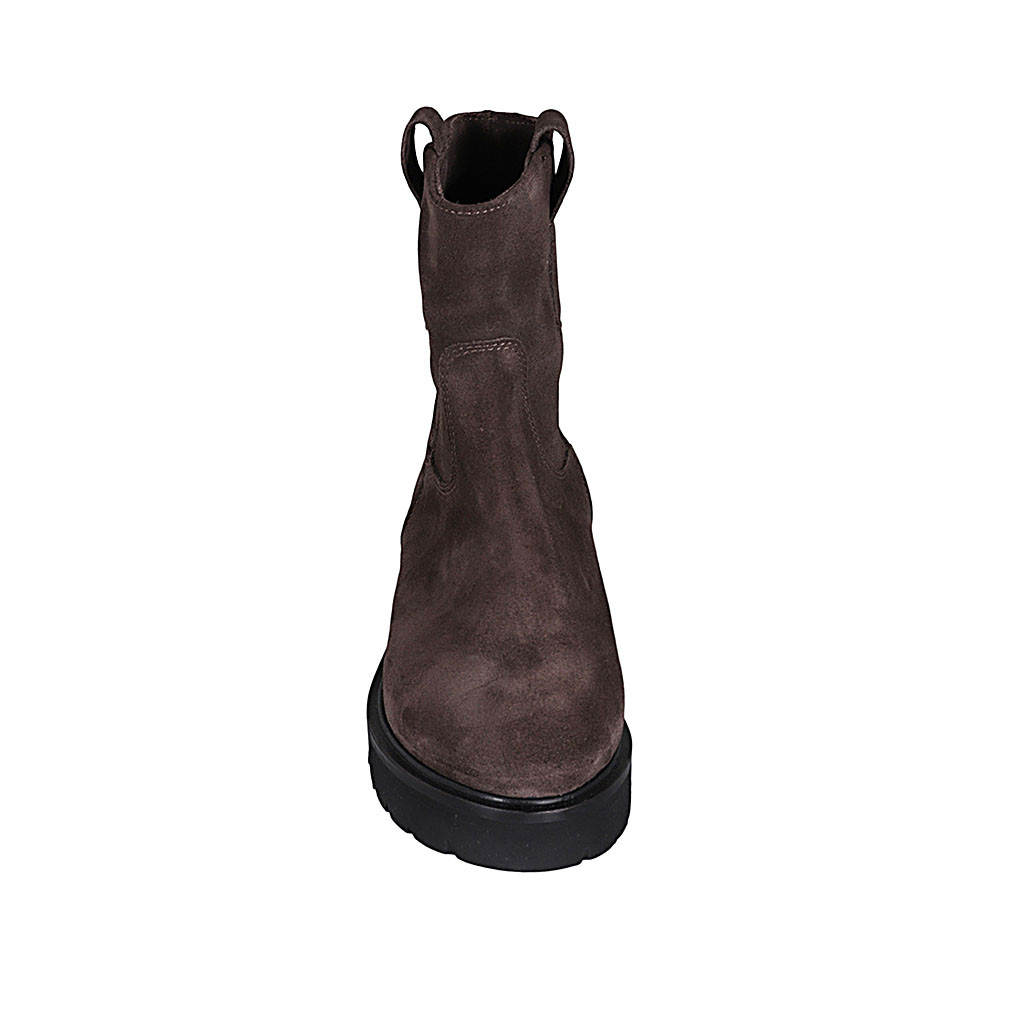 Sandalia para mujer en gamuza laminada gris, beis, rosada y piel laminada plateada con cinturon, plataforma y cuña 7